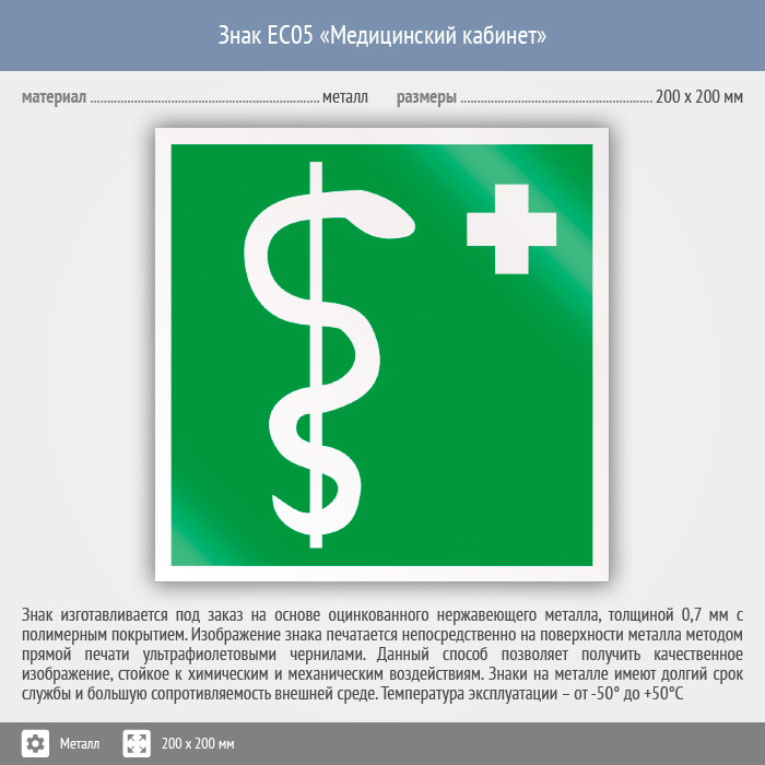 Знак EC05 «Медицинский кабинет» (металл, 200х200 мм) в Черкесске купить