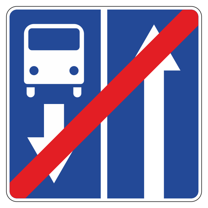 Дорожный знак 5.12.1 «Конец дороги с полосой для маршрутных транспортных средств» (металл 0,8 мм, II типоразмер: сторона 700 мм, С/О пленка: тип В алмазная) в Черкесске купить