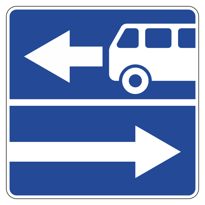 Дорожный знак 5.13.1 «Выезд на дорогу с полосой для маршрутных транспортных средств» (металл 0,8 мм, III типоразмер: сторона 900 мм, С/О пленка: тип А коммерческая) в Черкесске купить