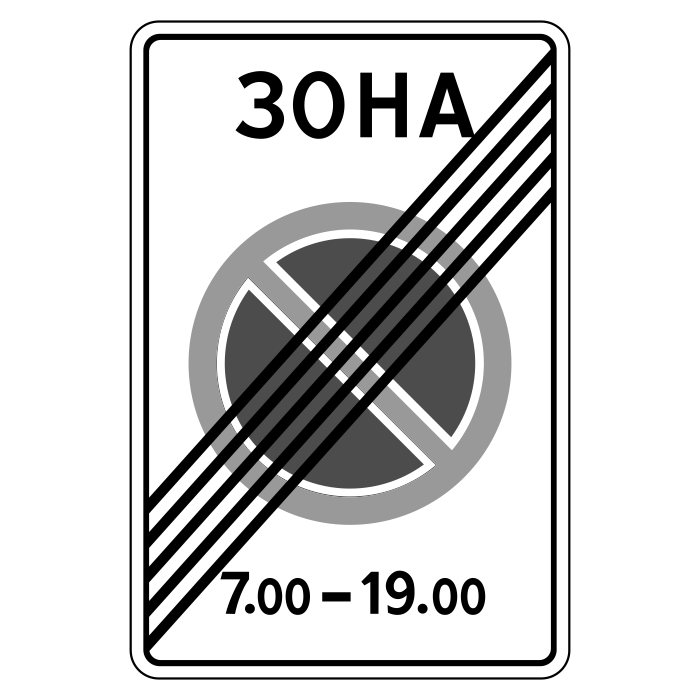 Дорожный знак 5.28 «Конец зоны с ограничениями стоянки» (металл 0,8 мм, I типоразмер: 900х600 мм, С/О пленка: тип А инженерная) в Черкесске купить