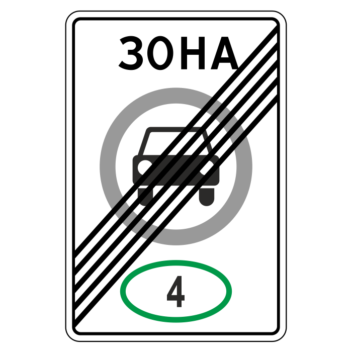 Дорожный знак 5.37 «Конец зоны с ограничением экологического класса механических транспортных средств» (металл 0,8 мм, I типоразмер: 900х600 мм, С/О пленка: тип В алмазная) в Черкесске купить