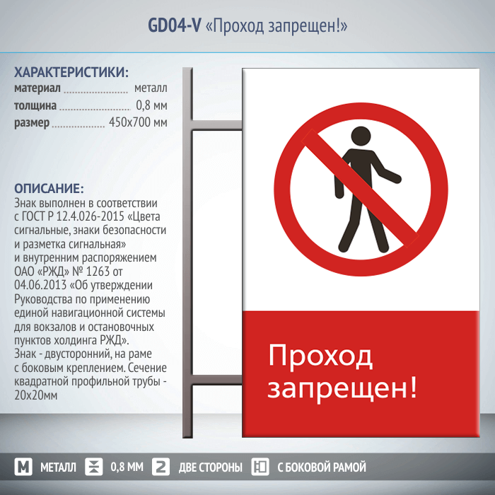 Знак «Проход запрещен!», GD04-V (двусторонний вертикальный, 450х700 мм, металл, на раме с боковым креплением) в Черкесске купить