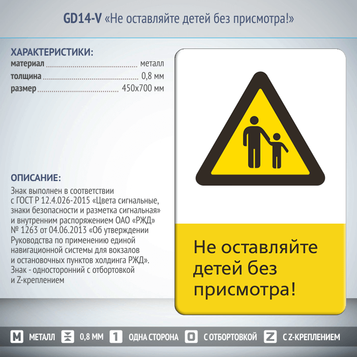 Знак «Не оставляйте детей без присмотра!», GD14-V (односторонний вертикальный, 450х700 мм, металл, с отбортовкой и Z-креплением) в Черкесске купить