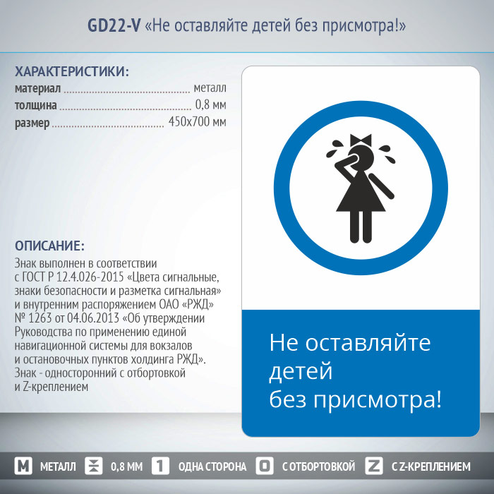Знак «Не оставляйте детей без присмотра!», GD22-V (односторонний вертикальный, 450х700 мм, металл, с отбортовкой и Z-креплением) в Черкесске купить