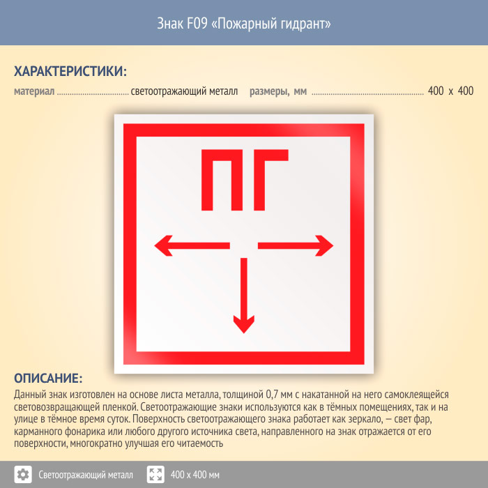 Знак F09 «Пожарный гидрант» (светоотражающий металл, 400х400 мм) в Черкесске купить
