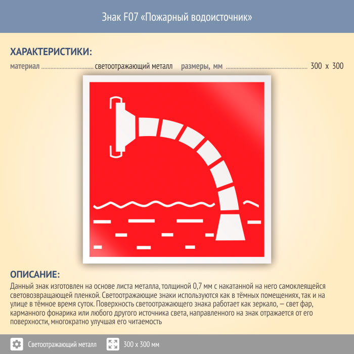 Знак F07 «Пожарный водоисточник» (светоотражающий металл, 300х300 мм) в Черкесске купить