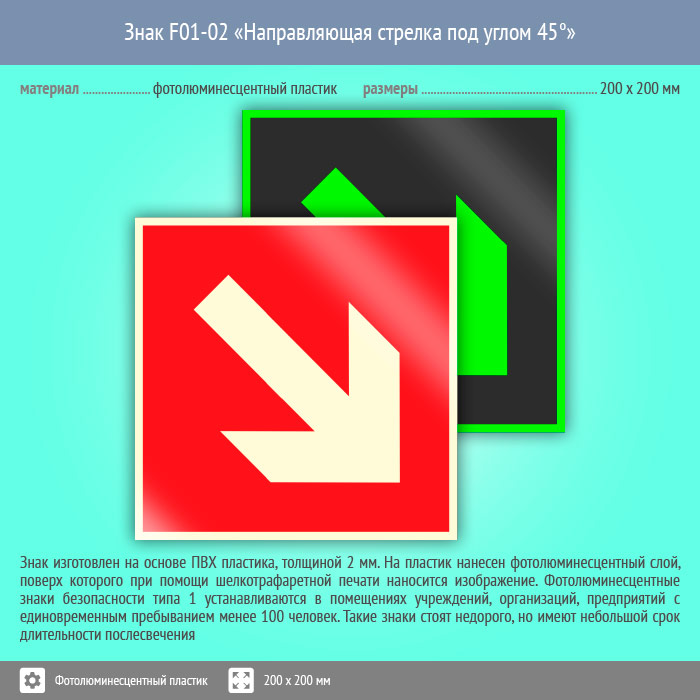 Знак F01-02 «Направляющая стрелка под углом 45°» (фотолюминесцентный пластик, 200х200 мм) в Черкесске купить
