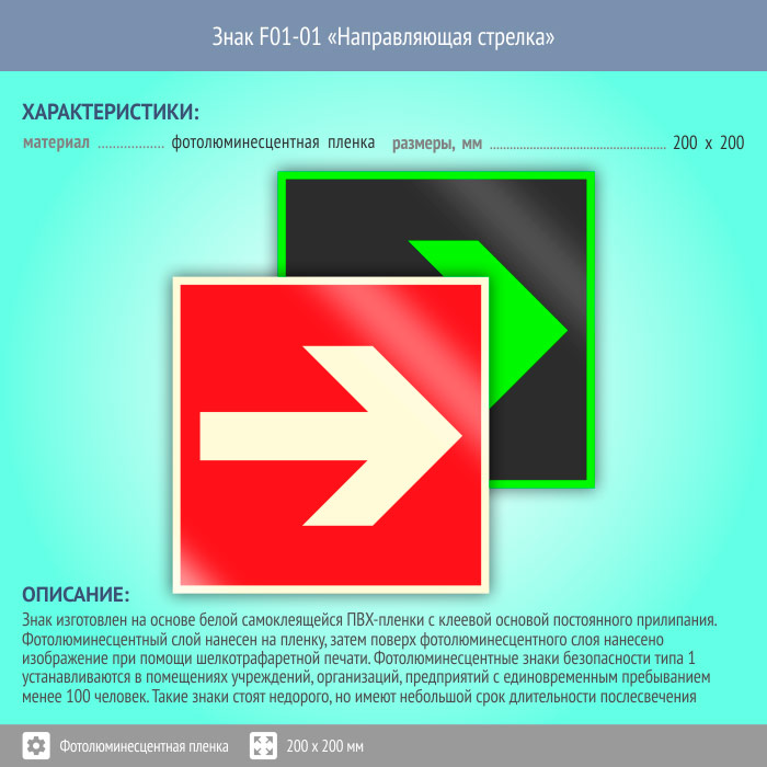 Знак F01-01 «Направляющая стрелка» (фотолюминесцентная пленка, 200х200 мм) в Черкесске купить