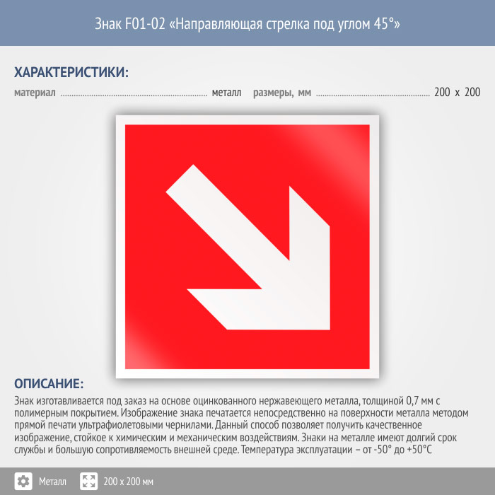 Знак F01-02 «Направляющая стрелка под углом 45°» (металл, 200х200 мм) в Черкесске купить