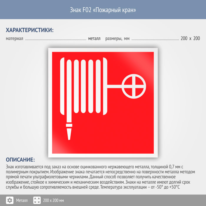 Знак F02 «Пожарный кран» (металл, 200х200 мм) в Черкесске купить