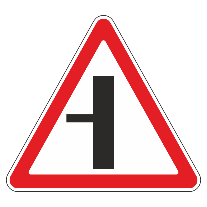 Дорожный знак 2.3.3 «Примыкание второстепенной дороги слева» (металл 0,8 мм, III типоразмер: сторона 1200 мм, С/О пленка: тип В алмазная) в Черкесске купить