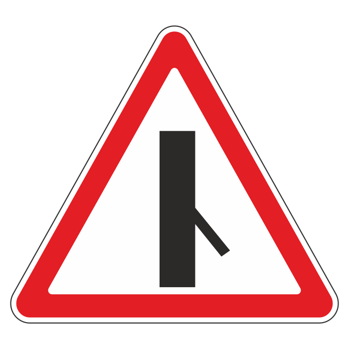 Дорожный знак 2.3.6 «Примыкание второстепенной дороги справа» (металл 0,8 мм, III типоразмер: сторона 1200 мм, С/О пленка: тип А коммерческая) в Черкесске купить
