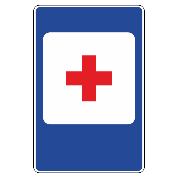 Дорожный знак 7.1 «Пункт первой медицинской помощи» (металл 0,8 мм, II типоразмер: 1050х700 мм, С/О пленка: тип В алмазная) в Черкесске купить