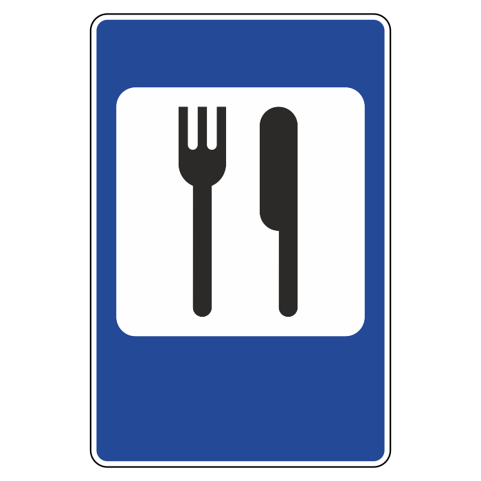 Дорожный знак 7.7 «Пункт питания» (металл 0,8 мм, II типоразмер: 1050х700 мм, С/О пленка: тип В алмазная) в Черкесске купить