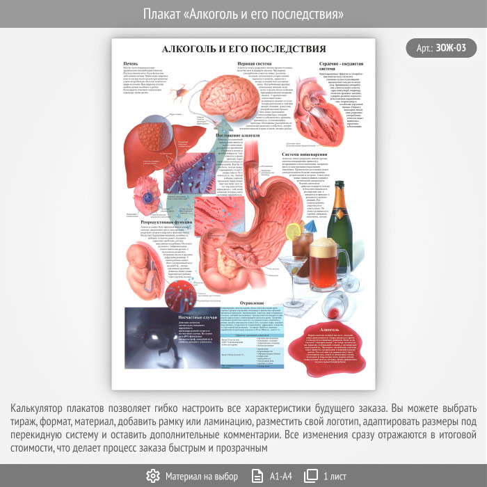 Плакат «Алкоголь и его последствия» (ЗОЖ-03, 1 лист) в Черкесске купить
