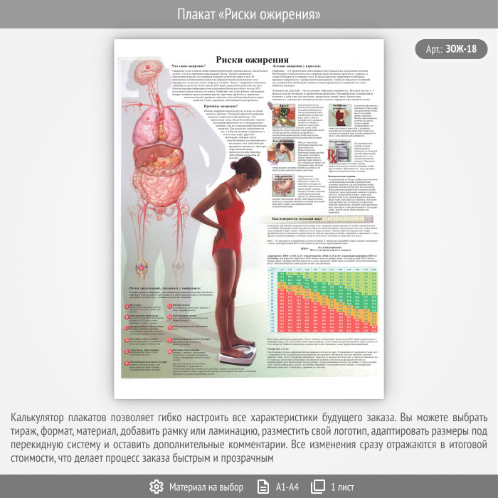 Плакат «Риски ожирения» (ЗОЖ-18, 1 лист) в Черкесске купить