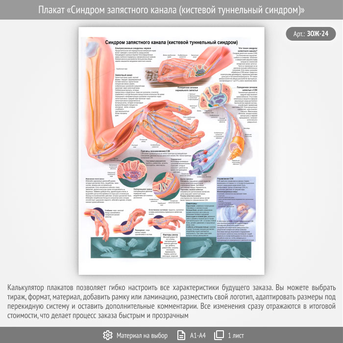 Плакат «Синдром запястного канала (кистевой туннельный синдром)» (ЗОЖ-24, 1 лист) в Черкесске купить