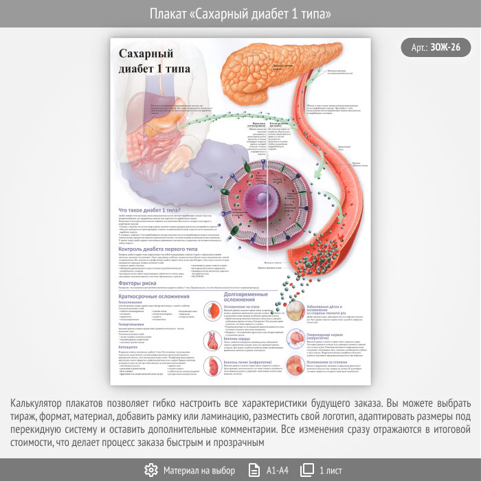 Плакат «Сахарный диабет 1 типа» (ЗОЖ-26, 1 лист) в Черкесске купить