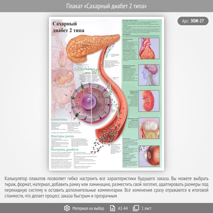 Плакат «Сахарный диабет 2 типа» (ЗОЖ-27, 1 лист) в Черкесске купить